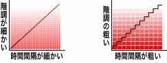 - 映像DACは、54MHz/10bitのように周波数とビット数で性能を表わします。周波数が大きいほどきめ細かくなり、ビット数が大きいほど階調表現力が精細になります。例えば、DVDでは13.5MHz/8bitの信号で記録されていますが、54MHz/10bitの製品は、DVD標準より4倍のきめ細かさ、4倍の精細度で途中の画像処理を行えることを表わしています。ただし、いずれの場合も、DVDに録画した時点でDVD規格である13.5MHz/8bitの信号となります。